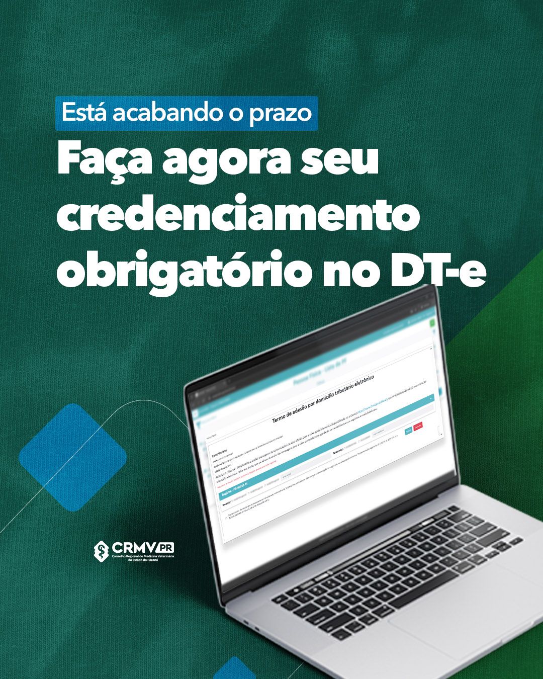 O credenciamento no DT-e é obrigatório para todos os profissionais e estabelecimentos registrados nos Conselhos Regionais de Medicina Veterinária (CRMVs).