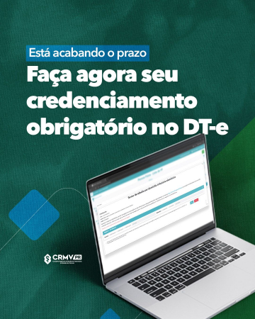 Atenção: O prazo para credenciamento voluntário no Domicílio Tributário Eletrônico (DT-e) ocorrerá até 30/11/2025, conforme a Resolução CFMV 1.641/2025.