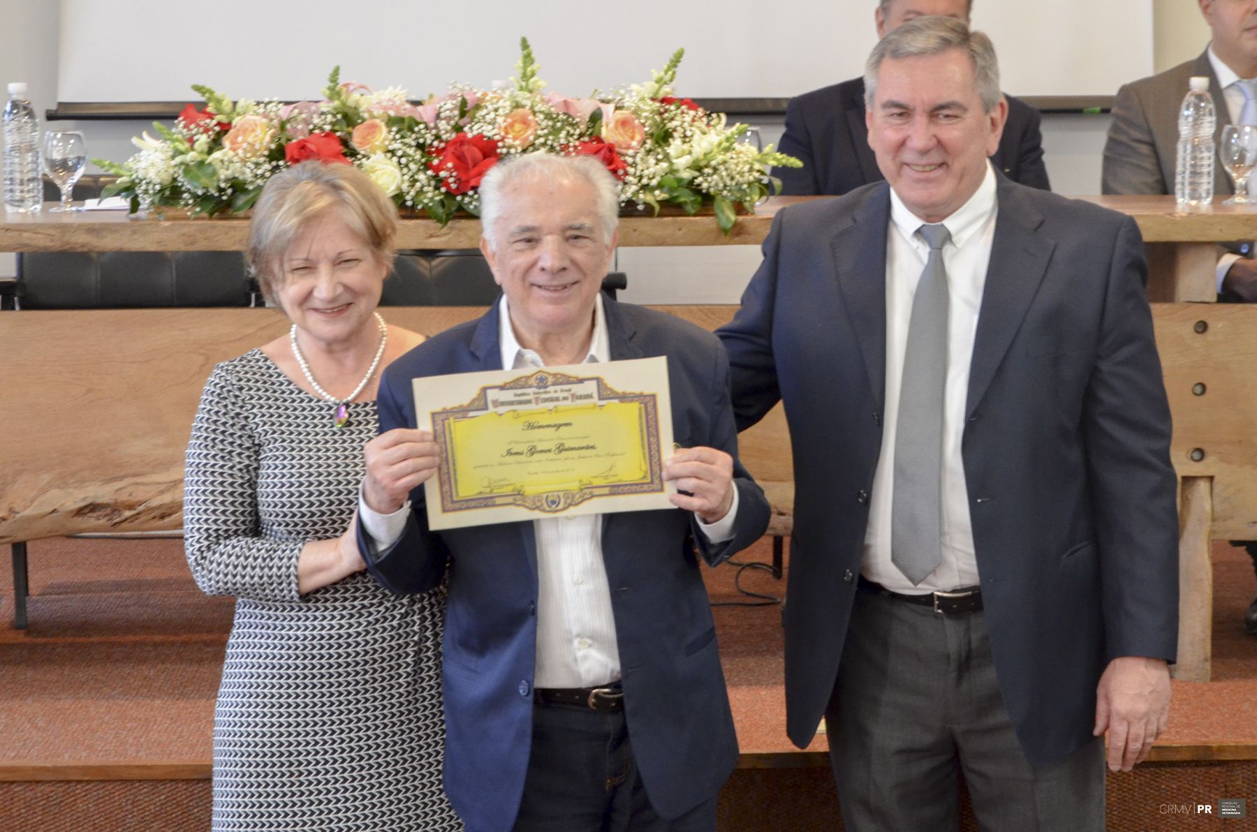 A turma de Medicina Veterinária da Universidade Federal do Paraná (UFPR), de 1969, conhecida como turma Professor José Milton Andriguetto, celebrou, na segunda-feira (09), o Jubileu de Ouro no anfiteatro de Ciências Agrárias. A celebração coincide com o Dia do Médico Veterinário, decretado em 1933. O evento contou com a participação do diretor de Ciências Agrárias, Amadeu Bona Filho, da vice-reitora da UFPR, Graciela Inês Bolzon, e do presidente do CRMV-PR, Rodrigo Távora Mira.