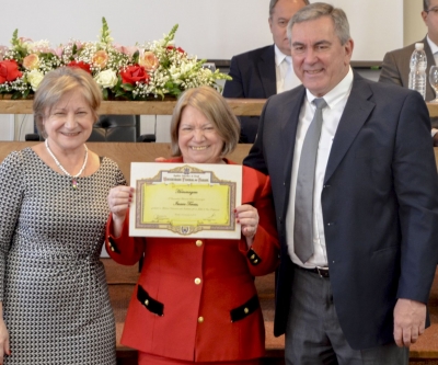 A vice-reitora parabenizou todos presentes na solenidade e desejou uma vida de prosperidade. “A inteligência é o farol que nos guia, mas a vontade que nos fazem caminhar. E vocês caminharam longe. A nossa trajetória é uma viagem cheia de paradas, vitórias e percalços. O resultado dessa viagem está aqui. Vocês são a memória viva da UFPR e são o nosso orgulho”.