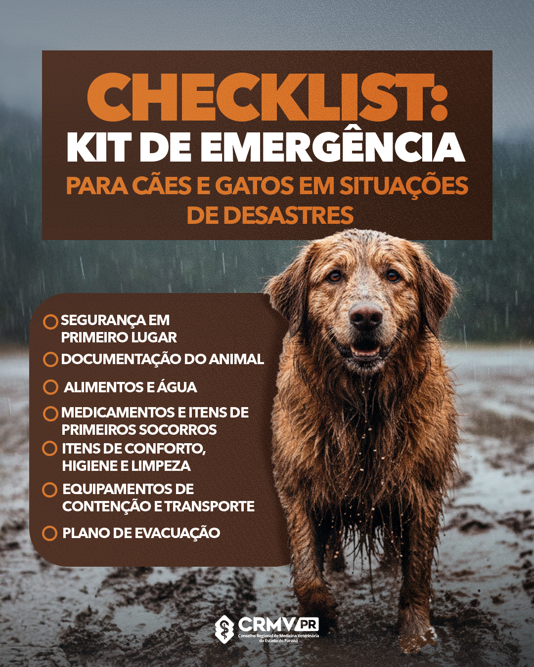 Animais de estimação não podem se preparar para um desastre, mas você pode! Eles são nossa responsabilidade e precisamos incluí-los nos nossos planos de emergência, no caso da ocorrência de um desastre. Em atenção ao Dia Internacional para a Redução do Risco de Desastres (13/10), data que foi instituída pela ONU com o objetivo de promover uma cultura global para incentivar a construção de comunidades e nações mais resilientes a desastres, a Comissão Estadual de Gestão de Riscos de Animais em Desastres do CRMV-PR, destaca a importância de estar preparado para emergências, especialmente quando se tem animais de estimação.
