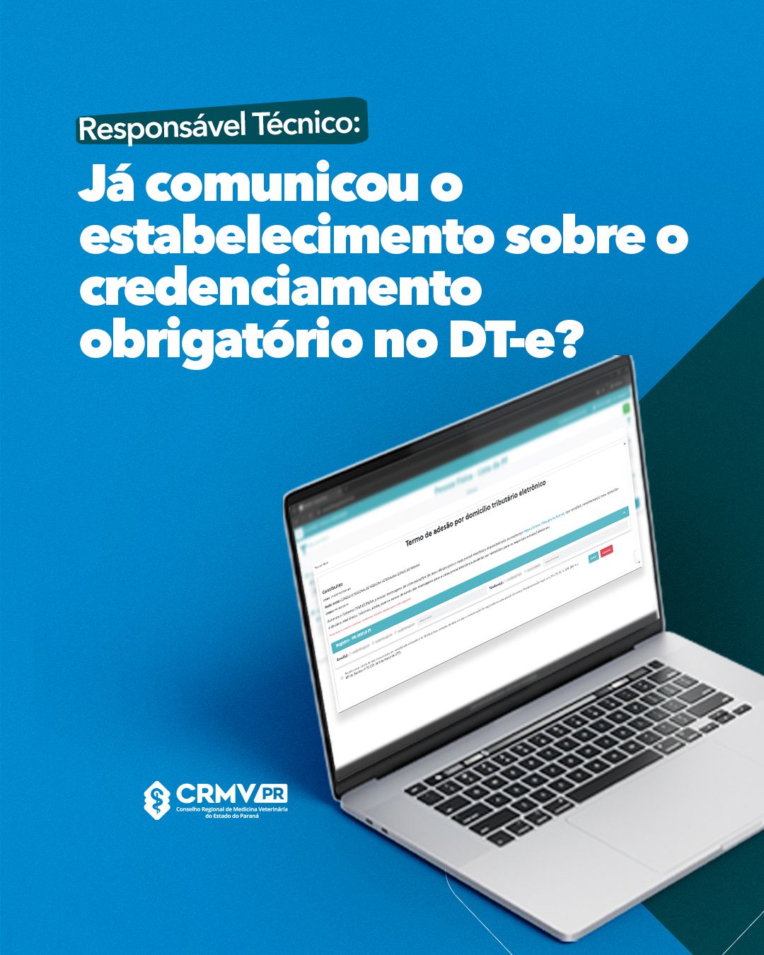 O credenciamento no Domicílio Tributário Eletrônico (DT-e) é obrigatório para todos os profissionais e estabelecimentos registrados nos Conselhos Regionais de Medicina Veterinária (CRMVs), conforme Resolução CFMV 1.563/2023.