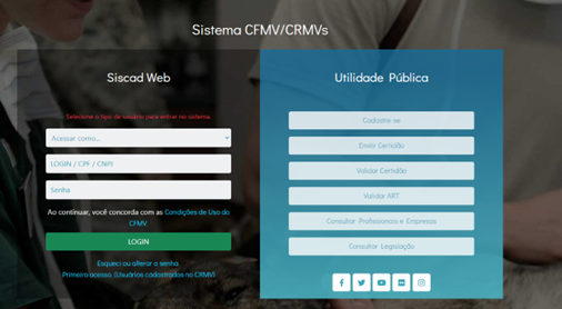 Acesse o link: https://app.cfmv.gov.br/usuario/login