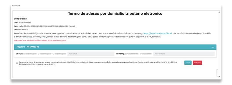 Na sequência, será exibida a tela "Termo de Adesão por Domicílio Eletrônico".