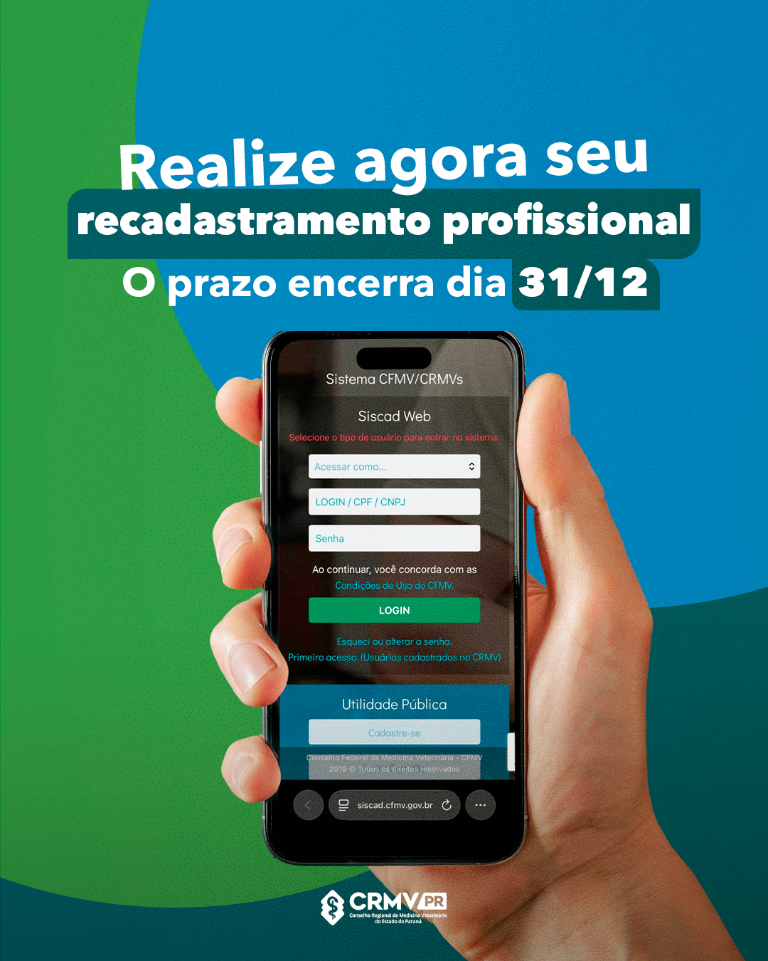 Faça o seu recadastramento no site: https://siscad.cfmv.gov.br/usuario/login