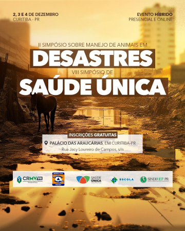 O Conselho Regional de Medicina Veterinária do Paraná (CRMV-PR), por meio da Comissão Estadual de Gestão de Riscos de Animais em Desastres, Comissão Estadual de Saúde Única e Comissão Estadual de Animais Selvagens, em parceria com a Coordenadoria Estadual da Defesa Civil, está realizando nesta semana o II Simpósio sobre Manejo de Animais em Desastres e o VIII Simpósio de Saúde Única.
